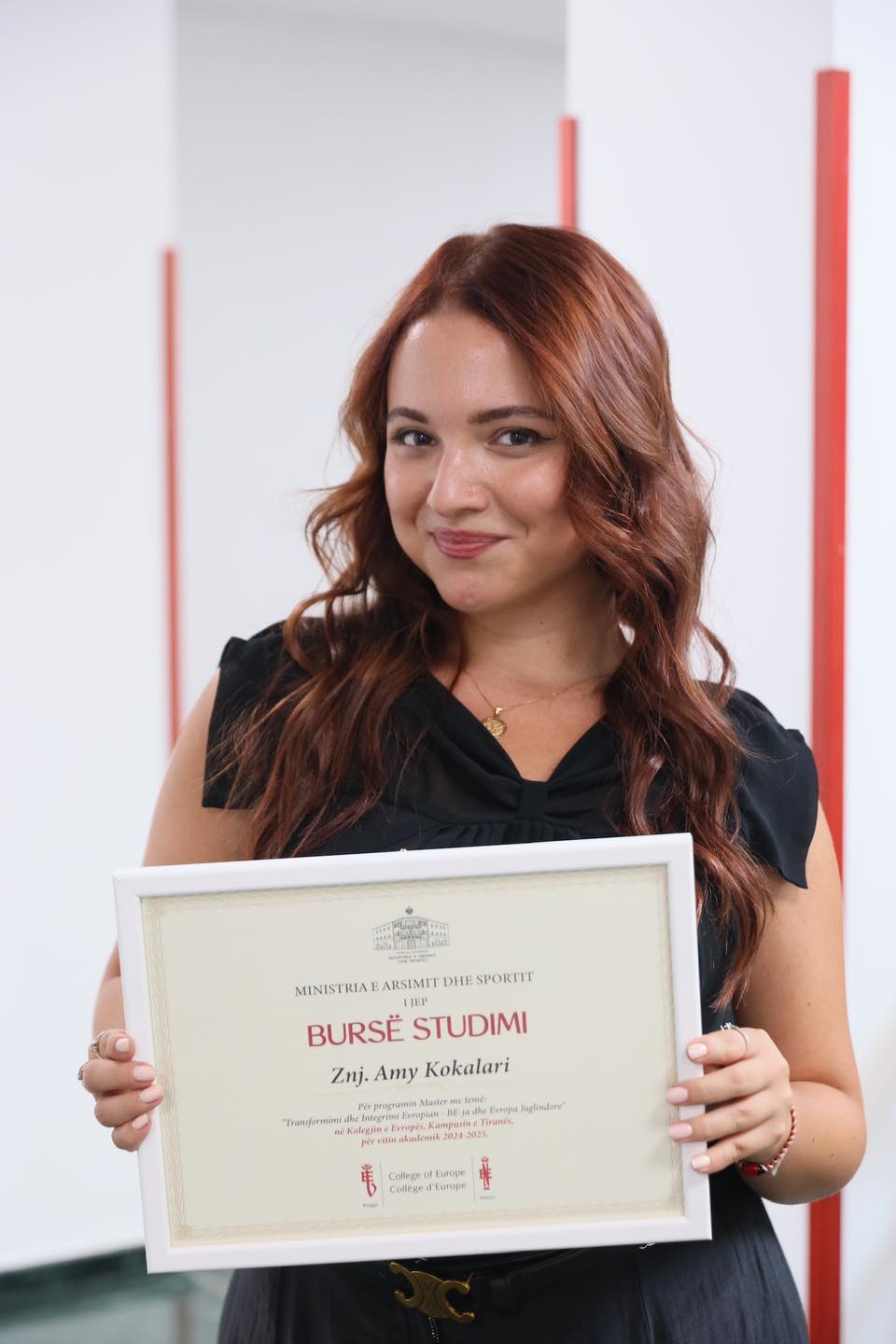 Kënaqësi takimi me Amy Kokalarin, përfituesen e një prej 5 bursave të qeverisë shqiptare për studimet në Kolegjin e Evropës në Tiranë, e cila mezi pret të kthehet në vendin e origjinës për të studiuar në ciklin e parë të studimeve master në Kolegjin e Evropës, Kampusin e Tiranës, me dëshirën që më pas të kontribuojë për zhvillimin e vendit, përmes njohurive të avancuara dhe përvojës në fushat e diplomacisë dhe integrimit evropian.